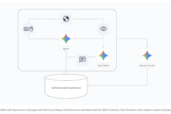 Google DeepMind has released SIMA 2 to test how far generalist embodied agents can go inside complex 3D game worlds. SIMA’s (Scalable Instructable Multiworld Agent) new version upgrades the original instruction follower into a Gemini driven system that reasons about goals, explains its plans, and improves from self play in many different environments. From SIMA…