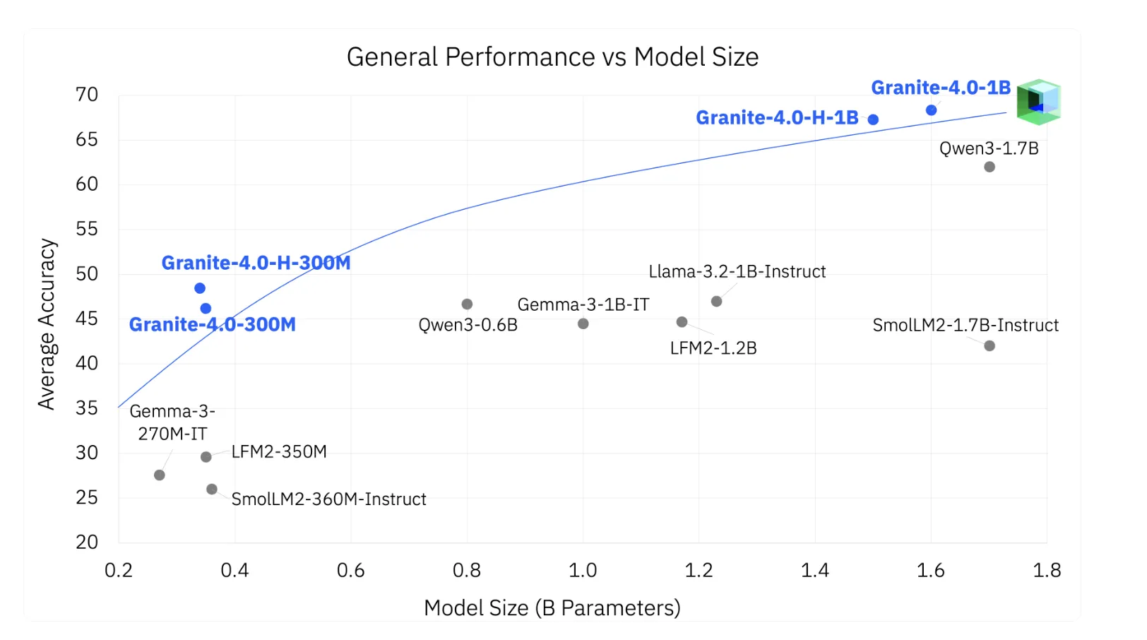 The H variants interleave SSM layers with transformer layers. This hybrid design reduces memory growth versus pure attention, while preserving the generality of transformer blocks. The Nano models did not use a reduced data pipeline. They were trained with the same Granite 4.0 methodology and more than 15T tokens, then instruction tuned to deliver solid tool use and instruction following. This carries over strengths from the larger Granite 4.0 models to sub 2B scales.