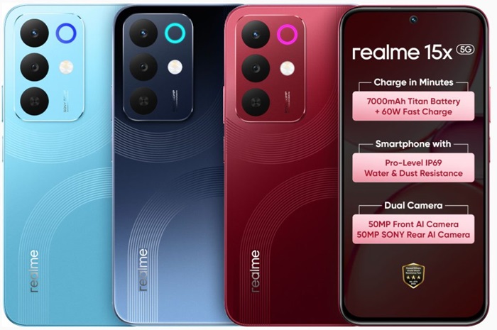 After introducing the realme 15 Series 5G and realme 15T 5G, realme India has added another latest 5G smartphone – the realme 15x 5G, under its number series lineup. The key highlights a massive 7,000 mAh battery, 144 Hz display, MediaTek Dimensity 6300 SoC, 50 MP Sony IMX852 main camera + 50 MP selfie camera, MIL-STD 810H military-grade design with IP68 + IP69 rated dust and water resistance, realme UI 6.0 on Android 15, and more.